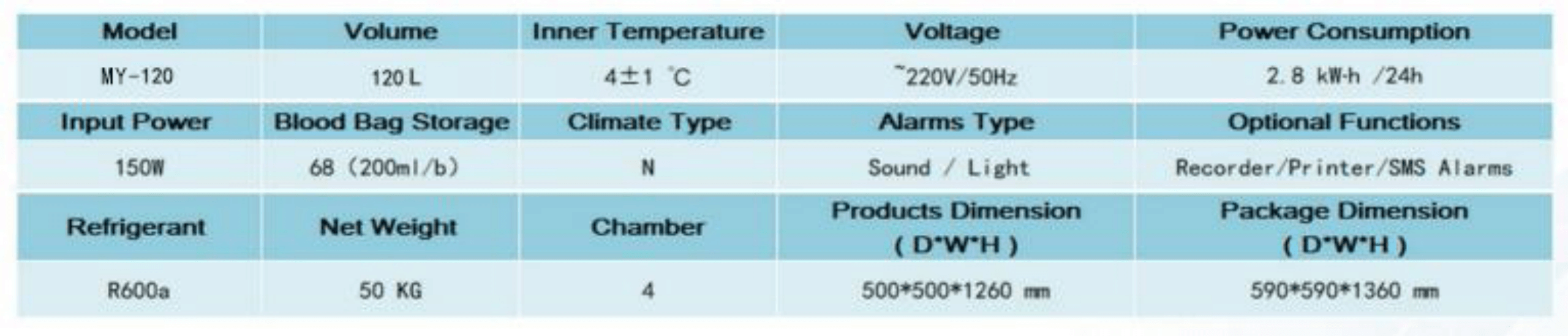 Tu sei qui: Casa / Prodotti / Attrezzature ospedaliere / Banca del sangue / Banca del sangue MY-120